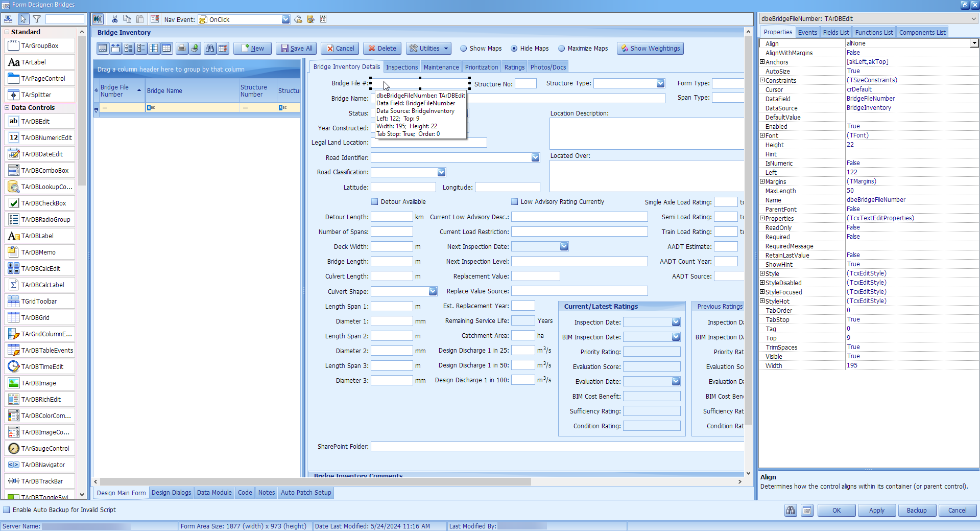 The Form Designer includes over 80 visual and non-visual, data-aware and non-data-aware components (controls), such as: